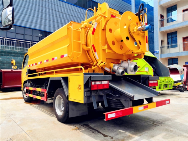 清洗部分:1.8方水箱,采用4mmQ235優(yōu)質(zhì)碳鋼板,水箱兩側(cè)消防接口進(jìn)水,工具箱一個。采用德國品浮高壓泵170升流量,24兆帕,配60米內(nèi)徑19#高壓管,10個大小不同噴頭一套, 后置式清洗卷盤,帶淋管裝置(用于淋洗高壓管疏通管道過后上面殘留的污物),帶氣吹水功能(用于吹出每次高壓管工作完以后內(nèi)部殘留的水漬,防止天冷結(jié)冰影響下次使用)