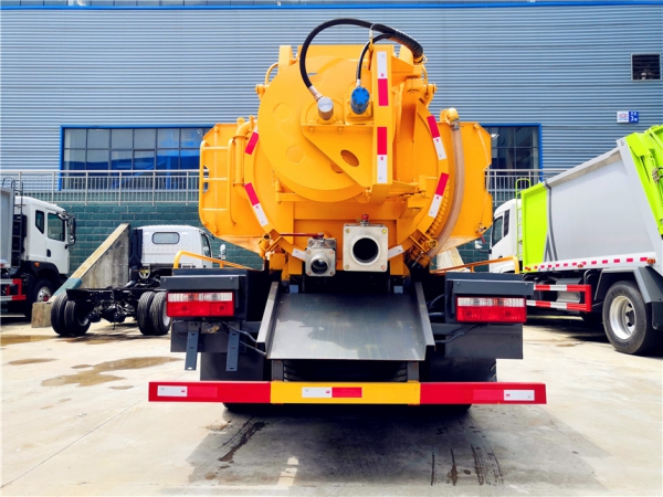 吸污部分:3.8方污罐,罐體5mmQ235優(yōu)質(zhì)碳鋼,配淄博SK-9水循環(huán)泵(北方地區(qū)可選裝真空油泵),8米吸污管一根,進(jìn)氣管加過濾網(wǎng),防溢閥加高,后蓋卡扣鎖緊,前視污亮管,后尾部加裝1個力拓牌100mm、150mm的球閥均帶進(jìn)出口,罐體帶舉升功能,后門帶液壓開啟。