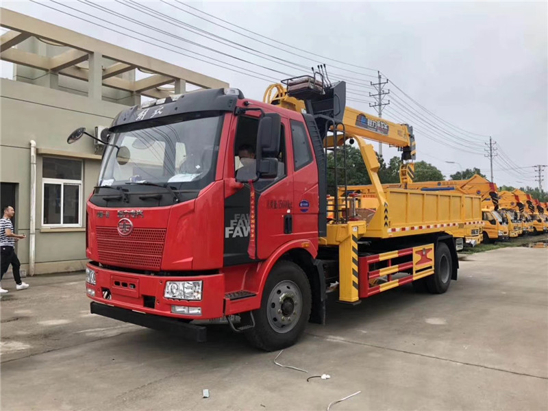 上裝配置:程力威龍8噸5節(jié)直臂吊機(jī)(舉升高度18.5米,工作半徑16.5米,全液壓全回轉(zhuǎn))清障一拖二,一車多用。