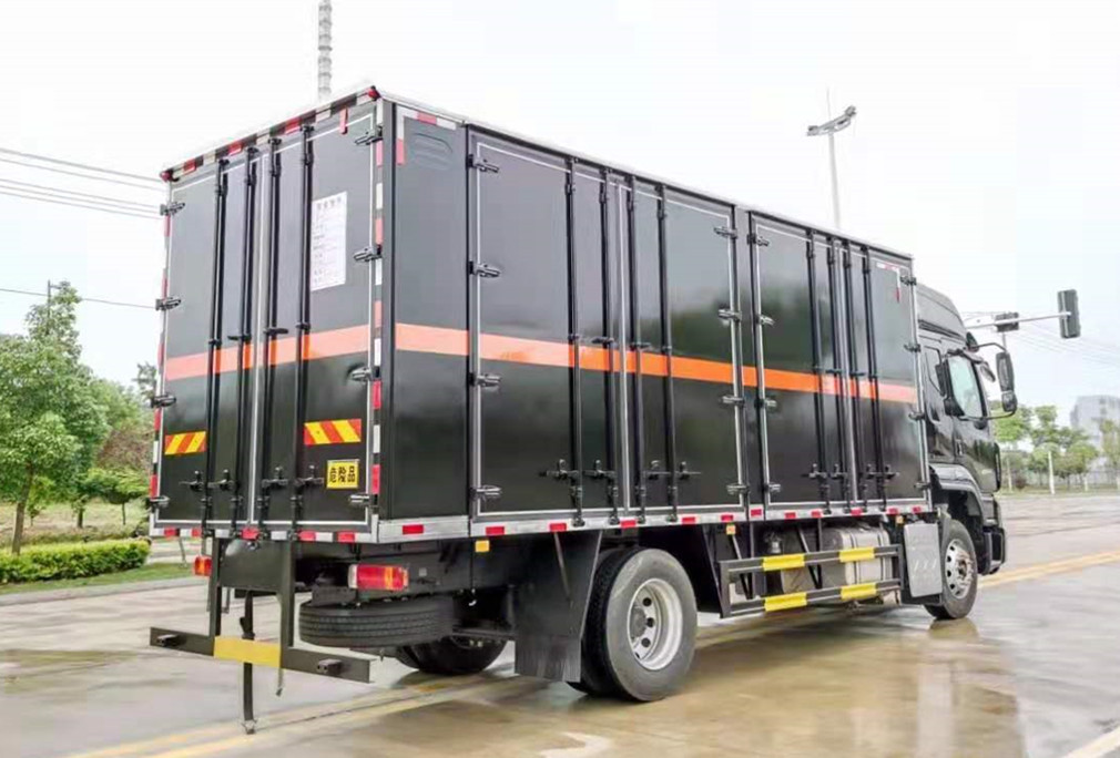 隨底盤選裝M3B駕駛室新面板,選裝導(dǎo)風(fēng)板,選裝前面板亮條,選裝A柱貼膜,選裝保險杠、翼子板,選裝車門下飾板,選裝臥鋪側(cè)窗,選裝綠玻璃,選裝導(dǎo)流罩,選裝高頂駕駛室;該車為危險品運輸車,類型為EX/Ⅲ;廂體頂部密封,不可開啟,廂體兩側(cè)選裝不同形式側(cè)開門及開門位置或不帶側(cè)門,選裝瓦楞板結(jié)構(gòu).運送爆炸品的項號: 1.1 D,1.1 D,1.1B,1.1B,1.1G ,1.1C,1.3C,1.1 D,1.1 D,1.4G,1.1D,1.1 D,1.1B,1.1B,1.3C,1.1C,1.3C,1.1D 。側(cè)/后防護材料為Q235,連接方式:焊接連接,后防護截面尺寸(mm):120×60,離地高度410mm。選裝液壓尾板時,后防護截面尺寸(mm):600×130,離地高度410mm,液壓尾板收起狀態(tài)的水平長度為280mm,尾板重量為550kg;該車僅使用排氣管前置、前輪為盤式制動器、裝配子午線輪胎的底盤,轉(zhuǎn)向輪安裝輪胎爆胎應(yīng)急防護裝置,后軸采用空氣懸架,安裝導(dǎo)靜電帶;該車裝有ABS,ABS型號/企業(yè):ABS-E 4S/4M/威伯科汽車**系統(tǒng)(**)有限公司,CM4XL-4S/4M/廣州瑞立科密汽車電子股份有限公司;該車安裝具有衛(wèi)星定位功能的行駛記錄儀,該車裝配有限速裝置,限速80km/h。采用發(fā)動機YCS06245-60A,油耗值為:25.8L/100km。選裝雙開門。 |